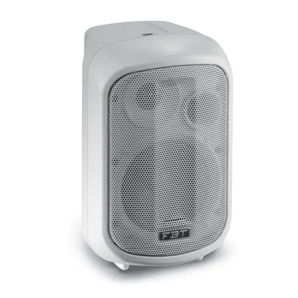The FBT J5 series speakers feature lightweight, yet rugged gas injected molded polypropylene cabinet construction. Available in black or white finish the FBT J5 series speakers modern cabinet appearance provides fixed installations with an elegant design that blends into any decor. With the use of optional accessories the FBT J5 speakers can be mounted on mic stands for many nearfield monitor applications, live sound and as a studio monitor. The FBT J5 is of two way design incorporating an 5″ low frequency woofer and 1″ HF custom compression driver. Cabinnet dispersion is 90°H x 90°V allowing for wide pattern coverage. The internal crossover is at a fixed frequency of 3.5kHz. With a frequency range of 90Hz – 20kHz the FBT J5 speakers provide high fidelity sound for both speech and music applications with a maximum SPL of 117dB. A front face steel grille protects the speaker from external damage. Ideal for small fixed installations the FBT J5 speaker system have an impedance of 16 Ohm allowing four FBT J5 speakers to be utilized per channel, for a total of eight J5 speakers when used with a stereo power amplifier capable of operating at 2 Ohm. The two M6 fly points built into the cabinets along with the optional mounting brackets allow the FBT J5 speakers to be surface mounted on walls or ceiling. For portable or fixed use the FBT J5 speakers can be mounted on mic stands by using the optional adapters for vertical mounting. Rear panel connections feature both a female 1/4″ input jack and push pin terminal connectors which are internally connected in parallel providing various wiring options for the installer.